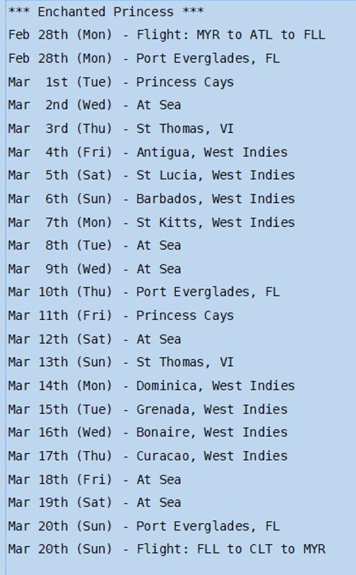 - Cruise: Feb 28, 2022 to Mar 20, 2022 - Itinerary & Map