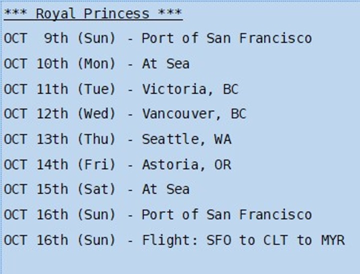 Cruise: Oct 9, 2022 to Oct 16, 2022